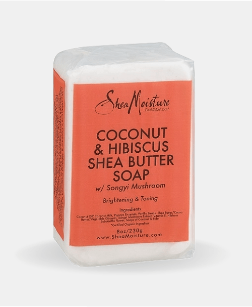 Shea Moisture Coconut & Hibiscus Shea Butter Soap. Established 1912. A bounty of nutrient-rich tropical ingredients high in vitamins, minerals and fatty acids working together to stimulate collagen production, improve skin firmness and naturally smooth wrinkles. The anti-inflammatory and antioxidant properties of the hibiscus flower help to maintain skin elasticity, improve skin tone and offer anti-aging effects.