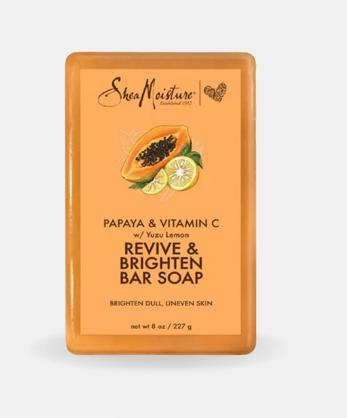 Shea Moisture Papaya & Vitamin C Revive & Brighten Bar Soap is a natural bar soap that reveals a brighter complexion. Use as often as required. Shea Moisture’s fresh, fruity and floral fragrant Papaya, Vitamin C Bar is great to even out and cleanse dull skin and uneven Skin. It is sulfate-free bar soap, dermatologically tested and delivers a thorough cleansing experience.