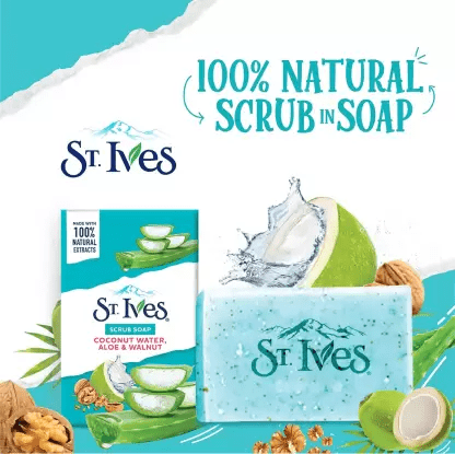 St. lves coconut water & Aloe Vera scrub soap is made up with 100% natural extract. It exfoliates the skin properly, smoothens and gives a glowing skin. It has an amazing smell and great texture mildly exfoliating, giving a bright tone and healthy skin.